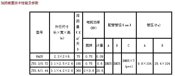 为适合使用上的需要,WA和JY型加药设备的投药方式有计量泵及喷射器两种基本形式。具有结构紧凑、配制齐全、安装迅速、操作简单、维护方便的特点。